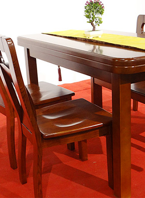 實木餐桌椅其優點在于渾然天成的木紋,